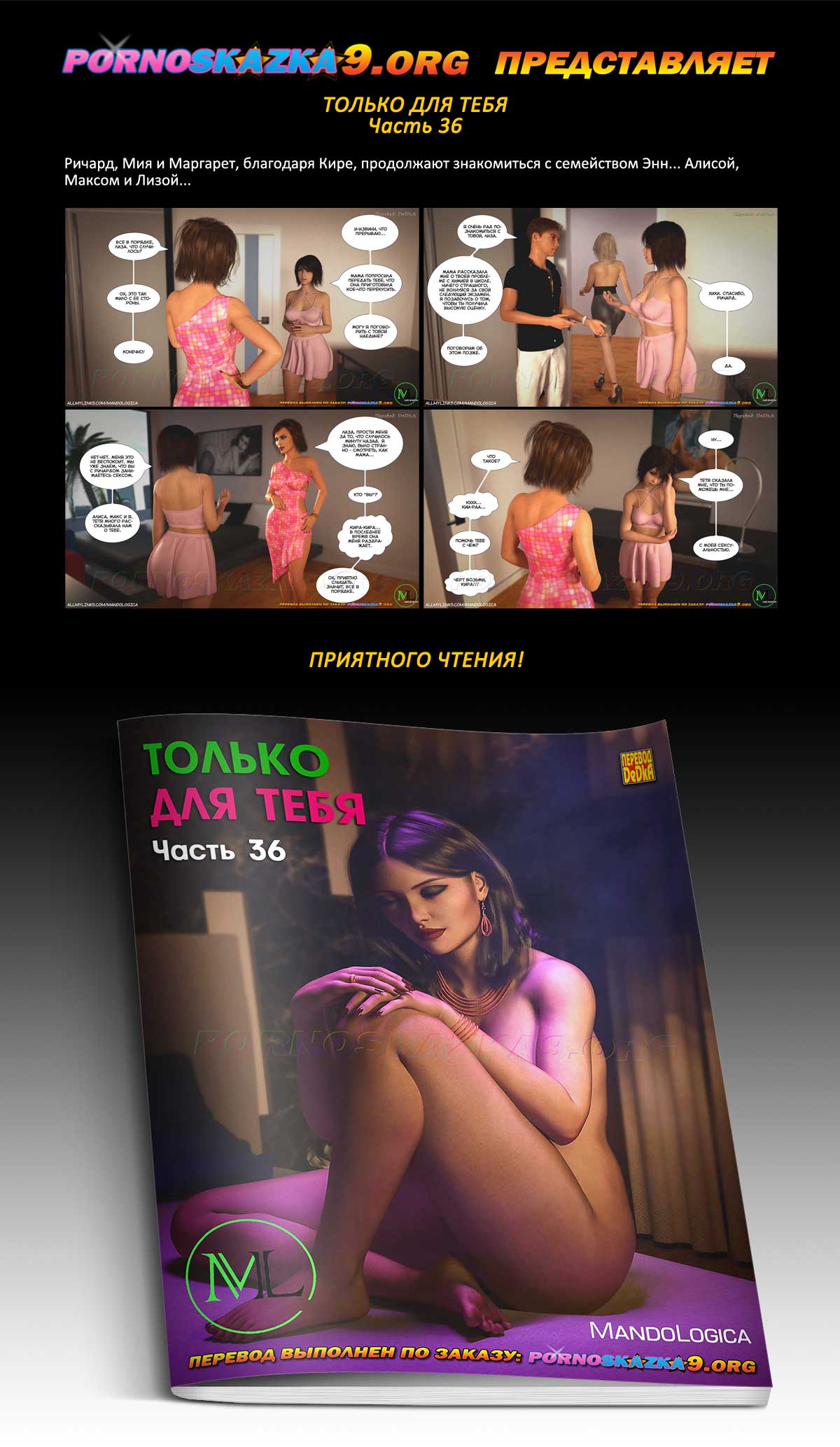Порно комик Только для тебя. Часть 36. Ричард, Мия и Маргарет, благодаря Кире, продолжают знакомиться с семейством Энн… Алисой, Максом и Лизой…